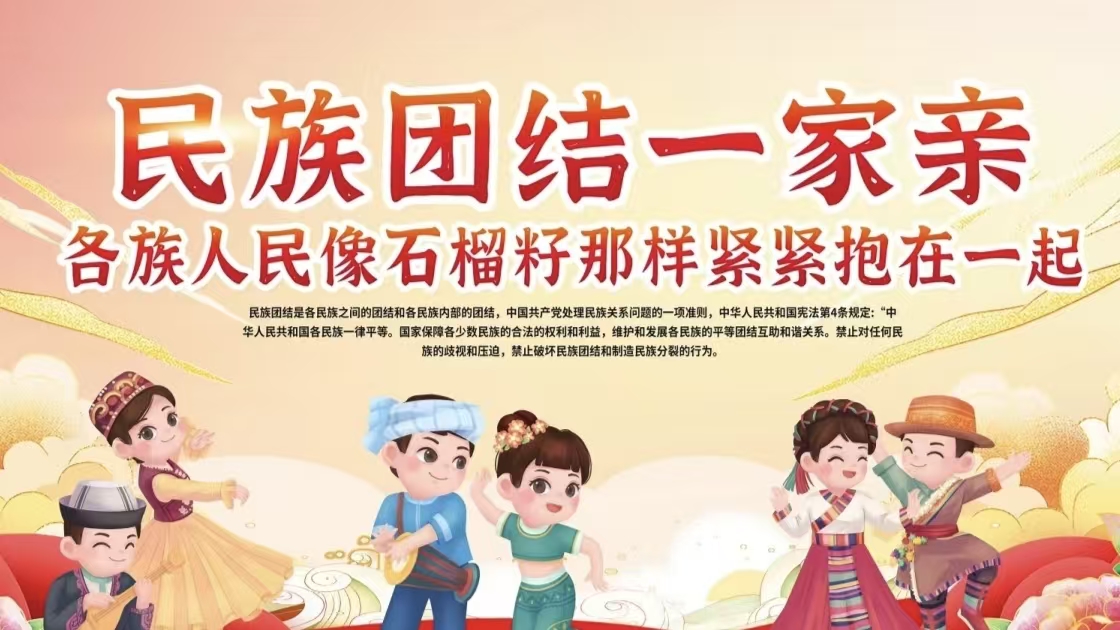 《民族团结颂》:“中华民族一家亲,华夏儿女心连心。五十六个民族在一起,像石榴籽一样抱得紧。活动结束的最后,希望2025级新生能够牢记民族团结,执手一起共建充满爱的校园。