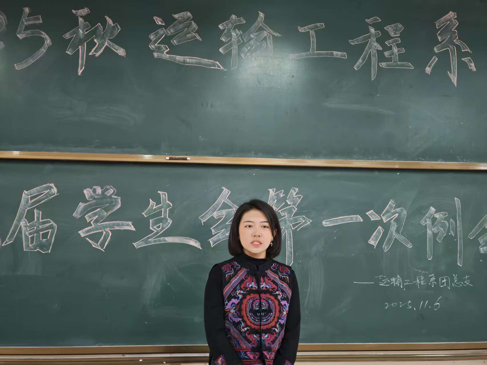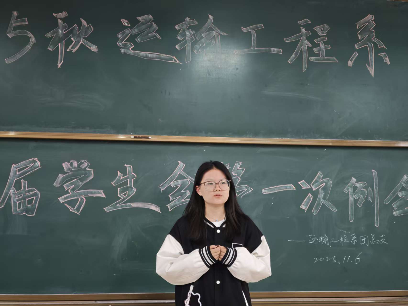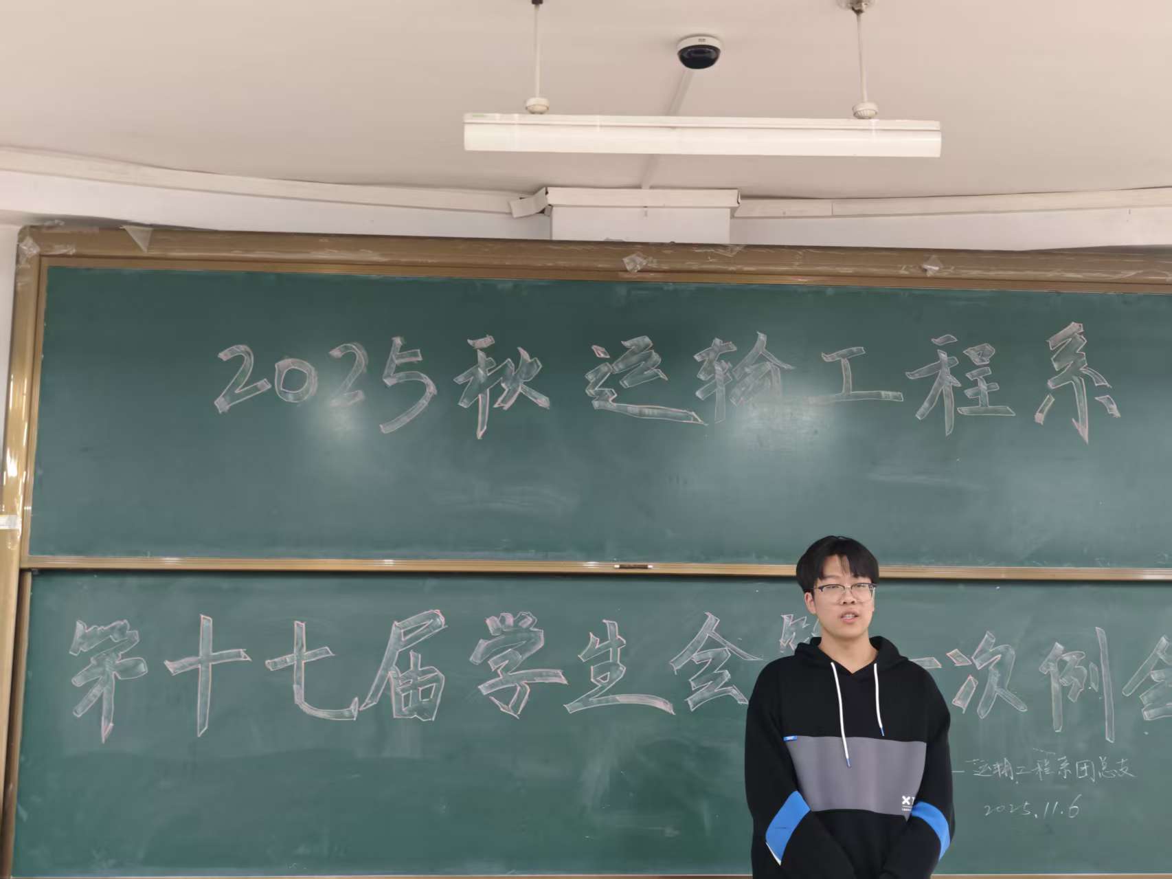 经过一个月实习期考察,运输工程系第17届学生会成功组建。2025年11月6日,运输工程系学生会在交楼j211召开了第十七届学生会第一次例会。参会成员有运输工程系辅导员张冠中老师,王洁茹老师及运输工程系学生会全体成员。